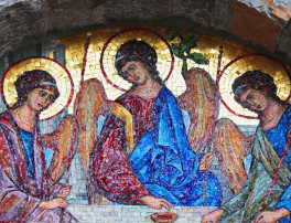 Il y a toute une spiritualité de la Trinité, je pense évidemment pour la période contemporaine à sainte Élisabeth de la Trinité. Très tôt, la foi et la spiritualité chrétiennes prennent conscience que Dieu n’est pas solitaire, mais qu’il est communion d’amour. C’est ce que dit à sa manière l’icône d’Andreï Roublev. Il y a quatre places autour de la table, qui est une table eucharistique avec la coupe et l’Agneau au centre. Mais la place de devant est vide : chacun est invité à participer à ce mystère ! Si nous sommes membres du grand corps dont la Tête, le Christ, est auprès du Père alors, la communion d’amour du Père, du Fils et de l’Esprit nous est ouverte, en particulier par l’Eucharistie ! Saint Augustin développe toute une méditation anthropologique de la Trinité. Si l’homme est créé à l’image de Dieu, alors les puissances de son âme la mémoire, la parole et la volonté sont comme des traces, des vestiges de la trinité qui structurent la personne humaine. Mais attention aux analogies superficielles, tout ce qui est ternaire n’est pas à mettre en relation avec la Trinité. Par exemple, il n’est pas très juste d’associer la sainte Famille à la trinité, même sous forme de reflet.