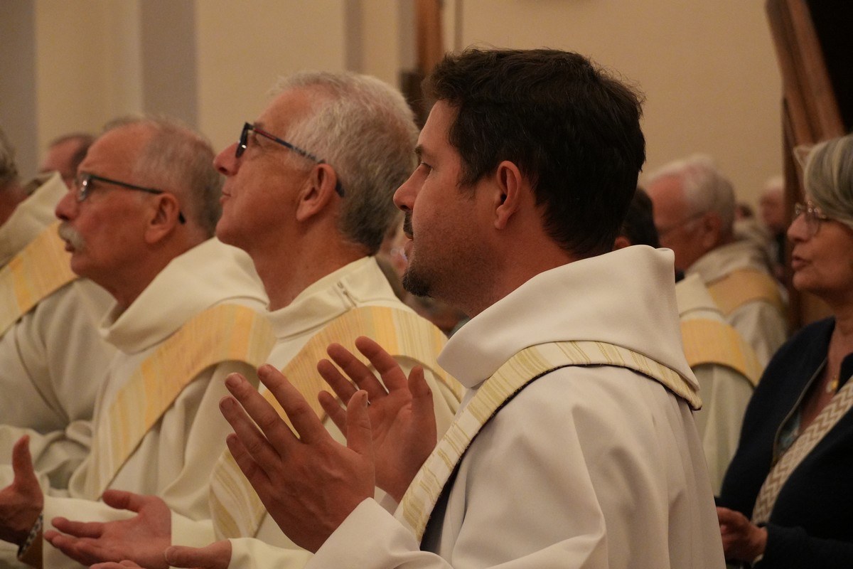Aux diacres et à leurs épouses, votre présence auprès de nous est essentielle. À tous les religieux, religieuses, aux consacrés. Merci."