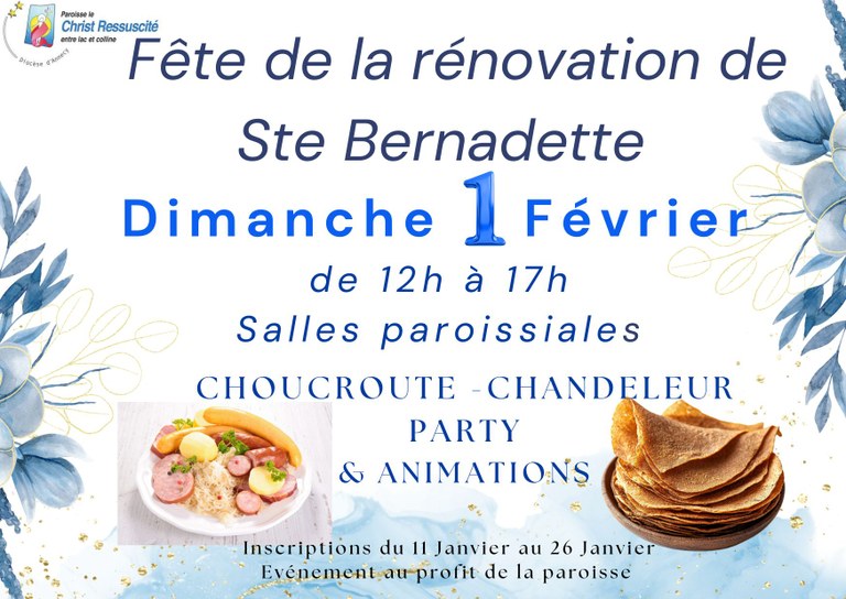Accueil Bienvenue sur le site de la paroisse ! Soutenez le diocèse Horaires des messes Feuille paroissiale Homélies Travaux de rénovation Abonnez-vous à notre lettre d'information À la une Tout l'agenda Halte spirituelle avec St François de Sales Semaine personnelle accompagnée du 1 au 7 Mars 2026 Choucroute et chandeleur Party Ciné spi Toutes les actualités Deux clochers, une unité En images L'expo qui explique tout ! Tout voir