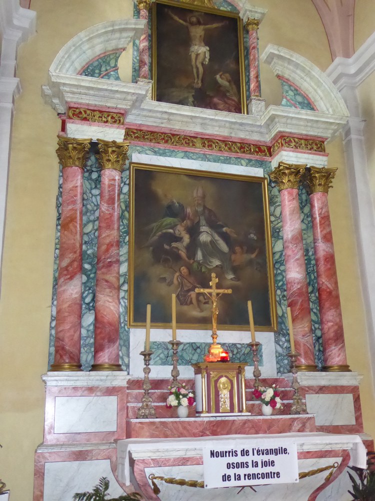 L'église est dédiée à Martin de Tours et fut financée par deux migrants du village, les frères Goujon, partis s'installer en Allemagne1. Elle possède des peintures des frères Dalla-Palma. Le presbytère est devenu aujourd'hui la mairie.