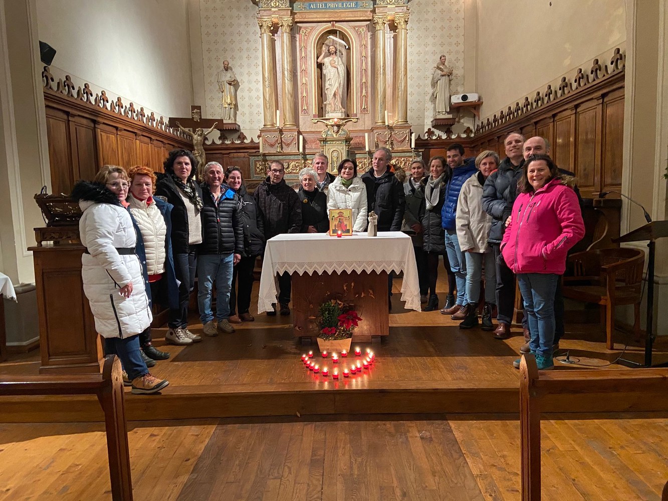 Quelques photos du temps de prière organisé dans l'église du Reposoir, autour de la figure du couple d'Anne et Joachim, les parents de Marie.