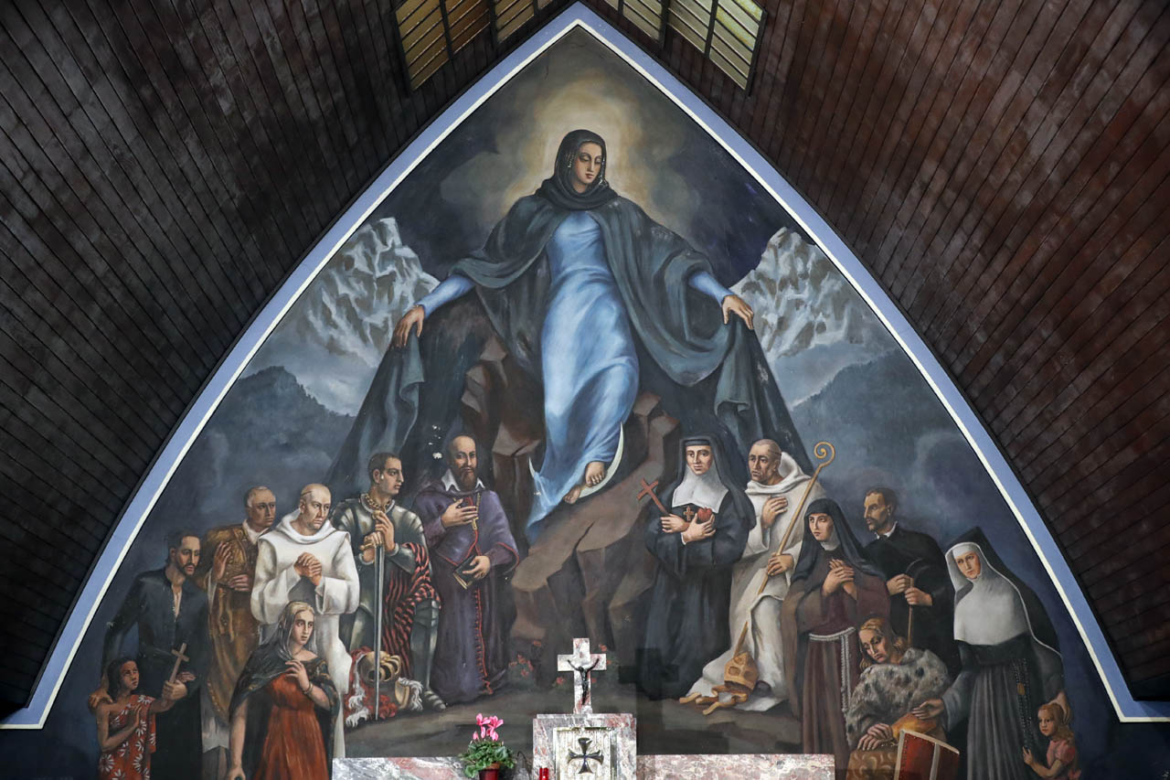 Les fresques du chœur ont été réalisées par Paul Monnier. L'arc représente saint Guérin à gauche et saint Bernard de Menthon à droite. La fresque du chœur située au fond de l'église derrière l'autel est réalisée à la cire d'abeille et représente l'Assomption de Notre-Dame des Alpes qui protège les principaux saints de Savoie. Nous pouvons y voir de gauche à droite : François Jaccard, Boniface de Cantorbéry, Marguerite de Valois, Jean d'Espagne, Humbert de Savoie, saint François de Sales, Jeanne de Chantal, Anthelme de Chignin, Louise de Savoie, le père Favre, Amédée de Savoie, Jeanne-Antide Thouret. Le tout est éclairé par un puits de lumière venant de la voute de l'église.