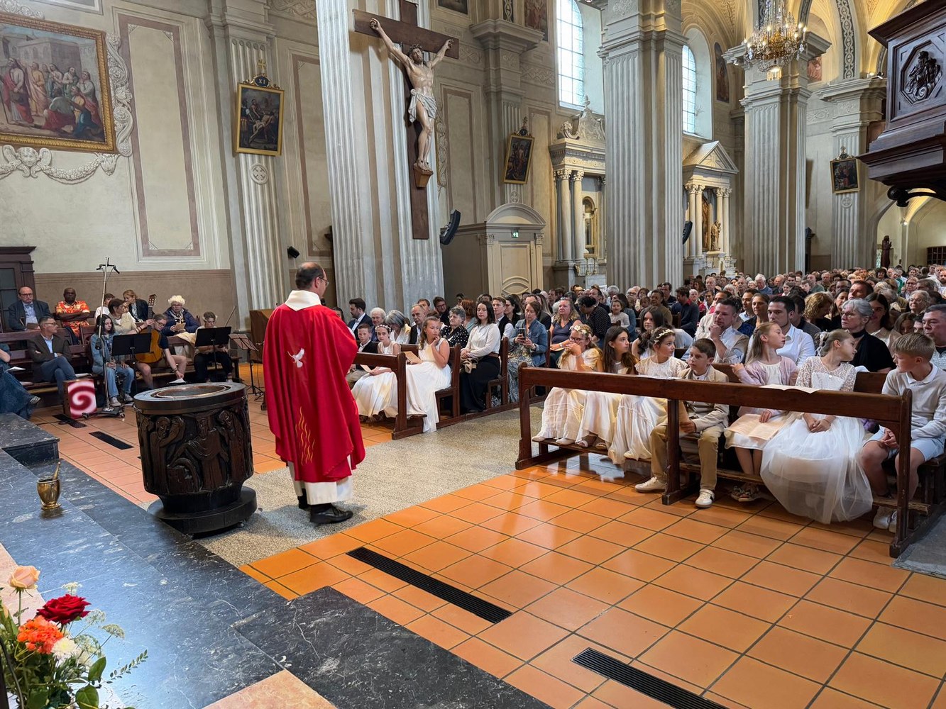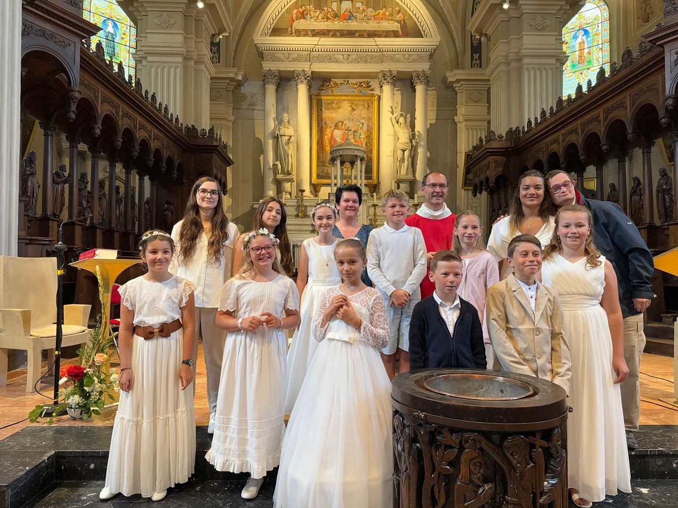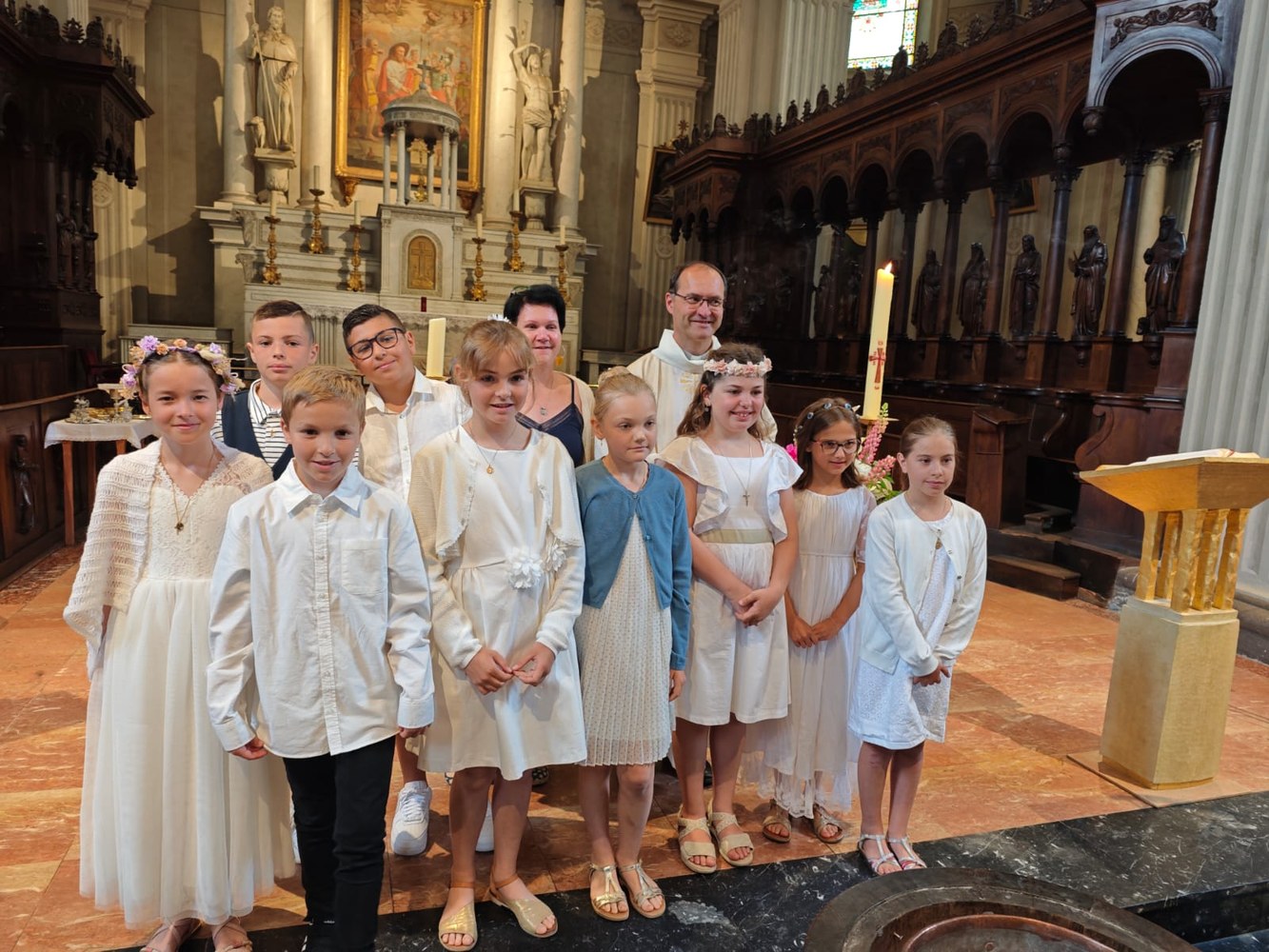 Les dimanches 1er et 8 juin, 19 enfants et 3 jeunes adultes baptisés à Pâques étaient présents avec leur famille lors de la messe dominicale à la Collégiale Saint Jacques à Sallanches.