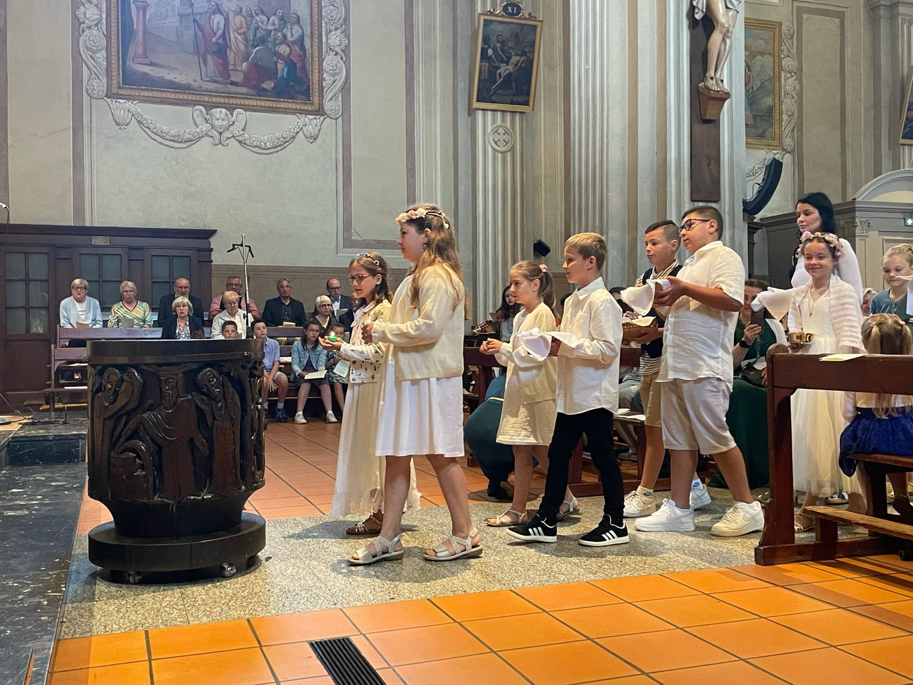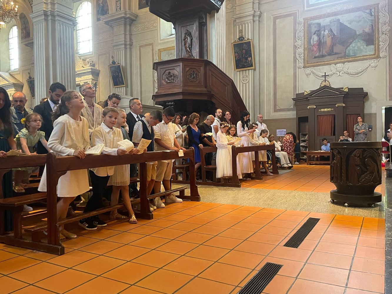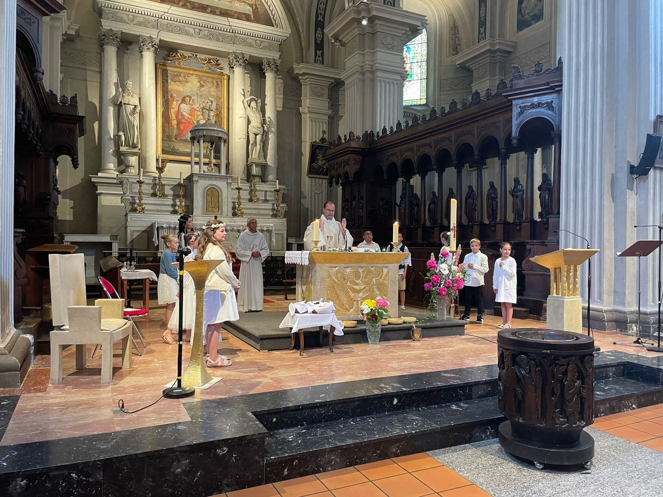 Les dimanches 1er et 8 juin, 19 enfants et 3 jeunes adultes baptisés à Pâques étaient présents avec leur famille lors de la messe dominicale à la Collégiale Saint Jacques à Sallanches.