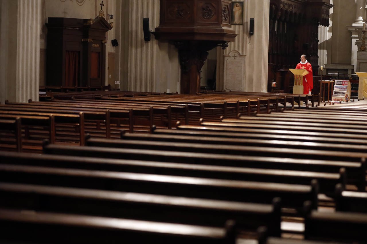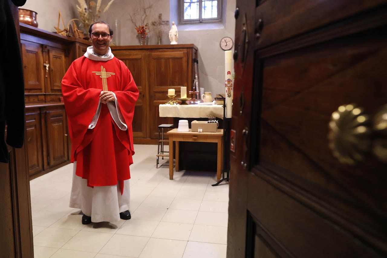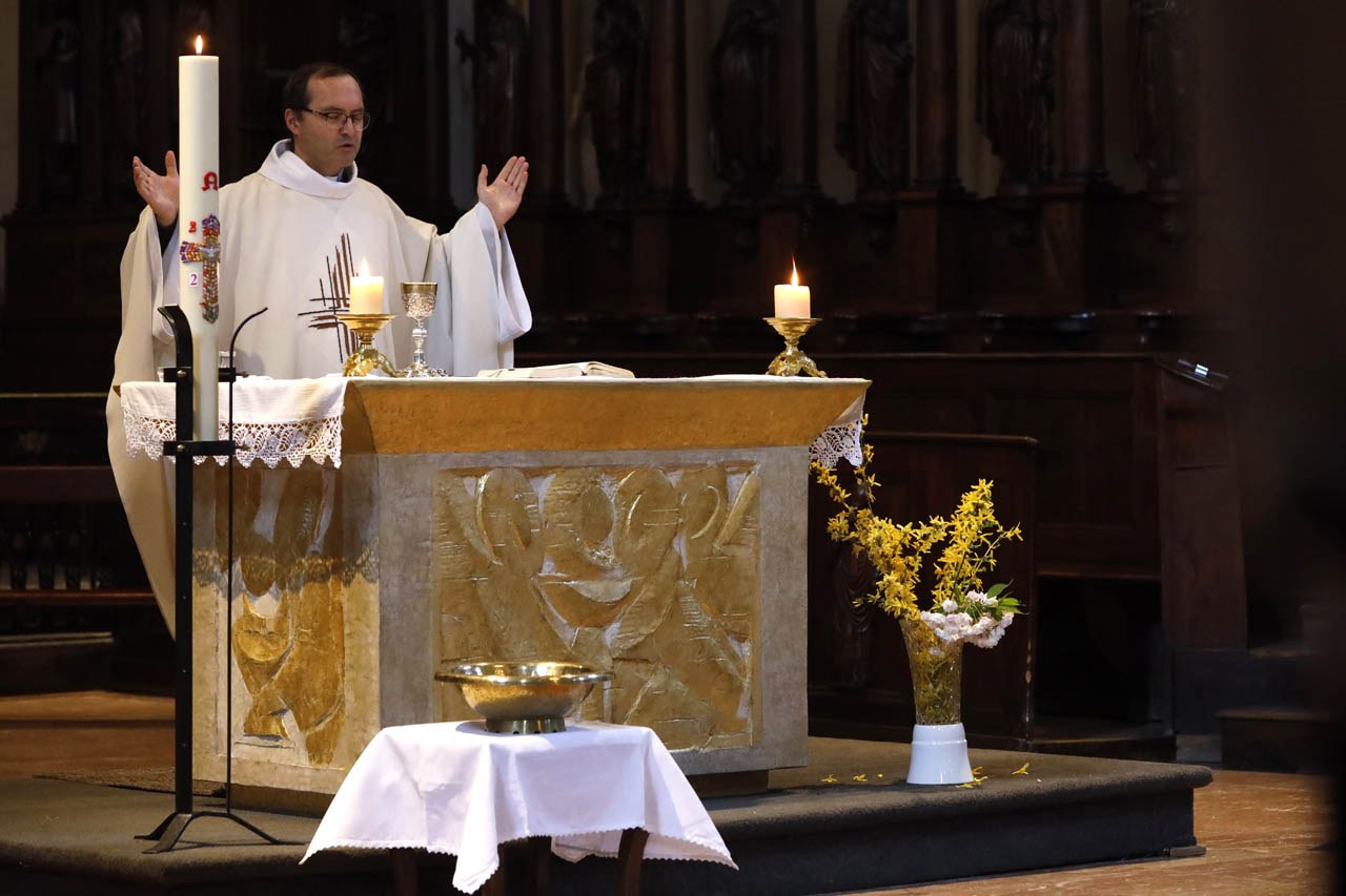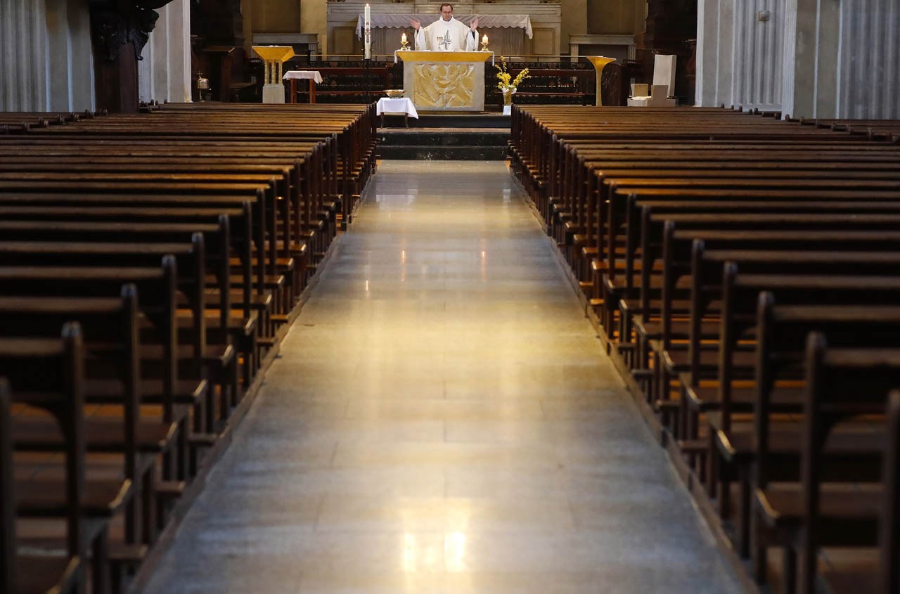 Eglise Saint Jacques de Sallanches : célébrations du vendredi saint et du dimanche de Pâques 2020 en l'absence de fidèles. Photos de Pascal Deloche, de l'agence Godong