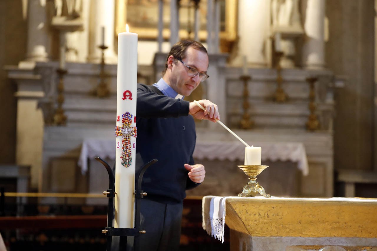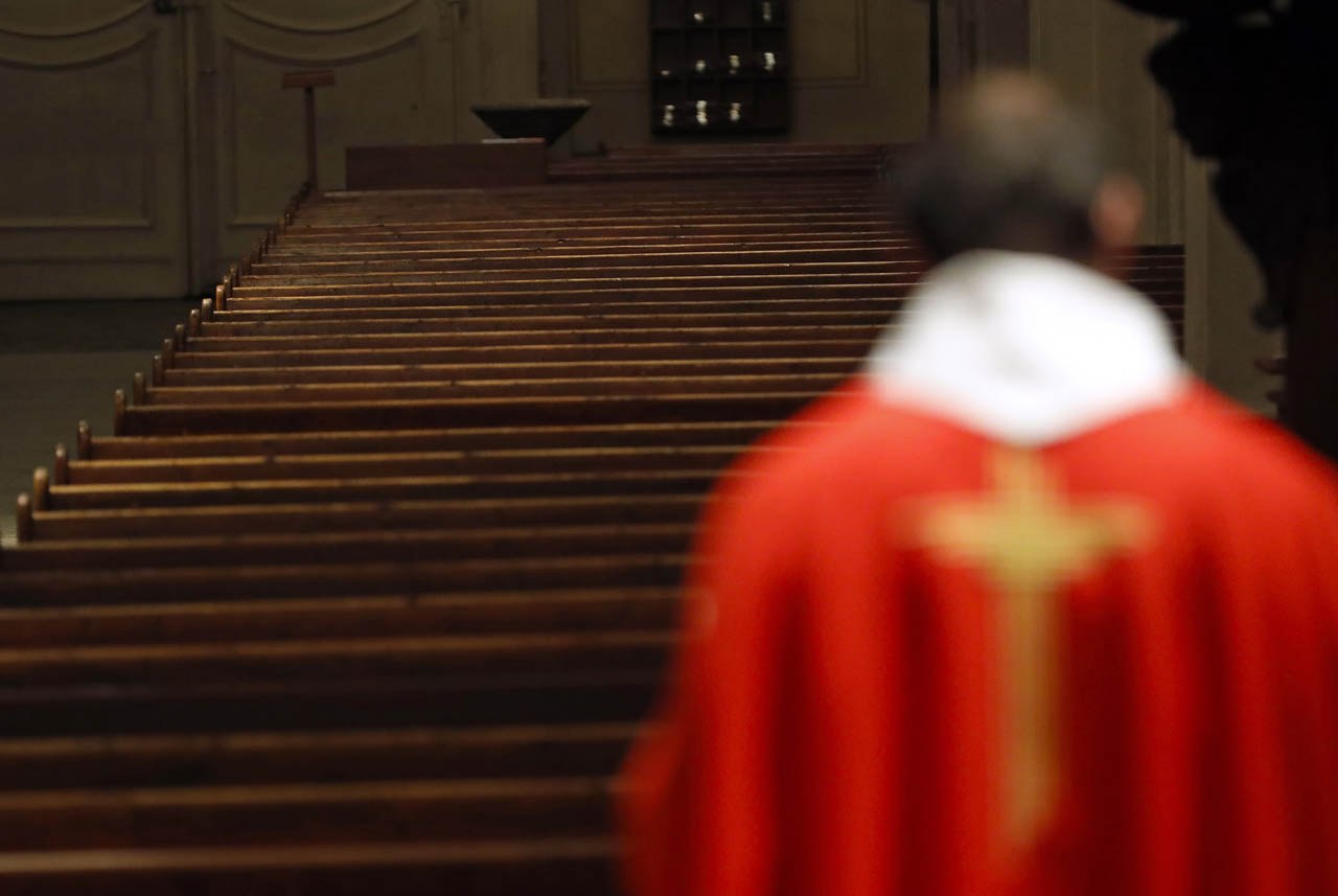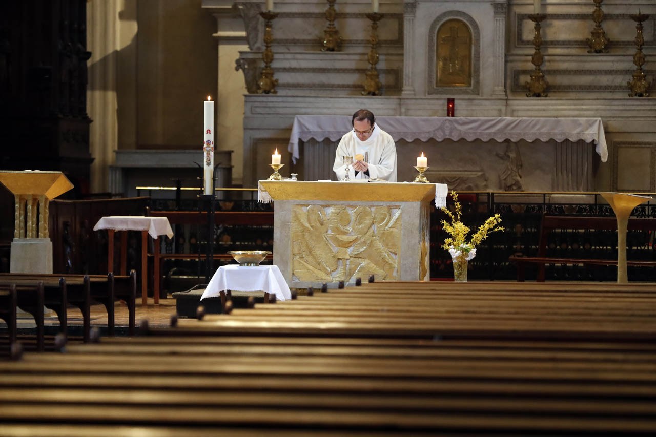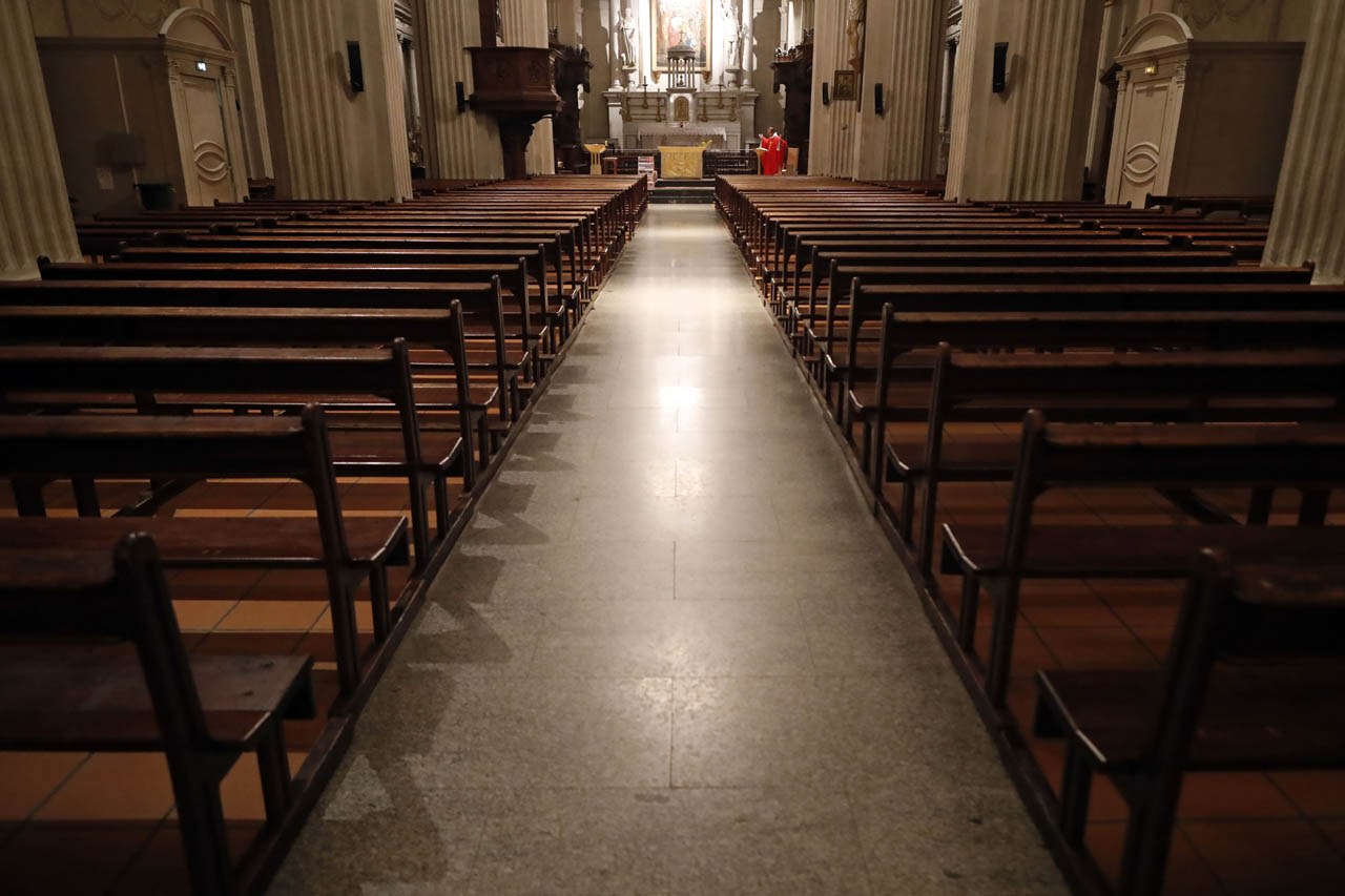 Eglise Saint Jacques de Sallanches : célébrations du vendredi saint et du dimanche de Pâques 2020 en l'absence de fidèles. Photos de Pascal Deloche, de l'agence Godong