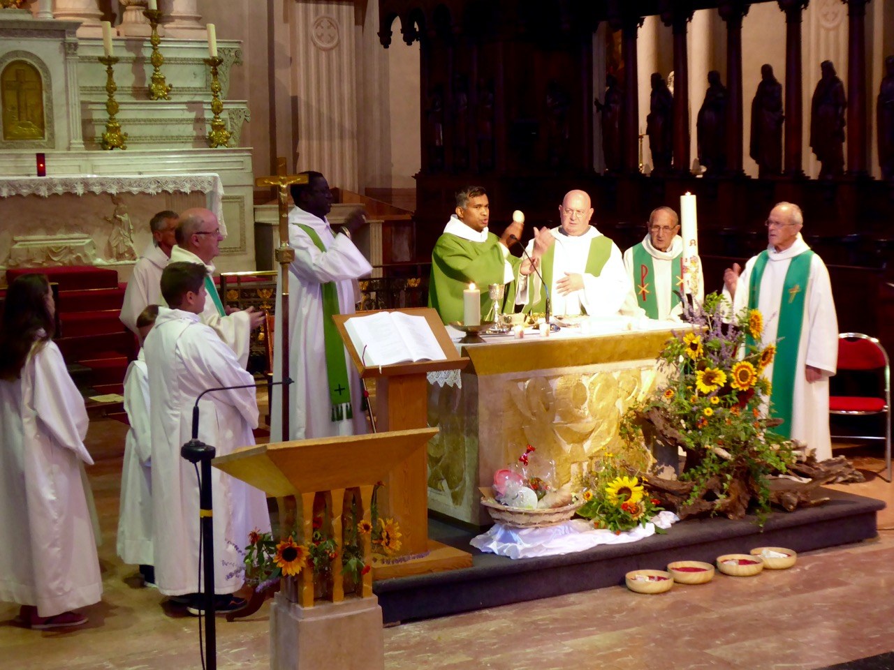 Le dimanche 25 août, toutes les communautés de la paroisse St François en Vallée d'Arve étaient réunies en l'église St Jacques de Sallanches pour la messe de départ du Père Johny
