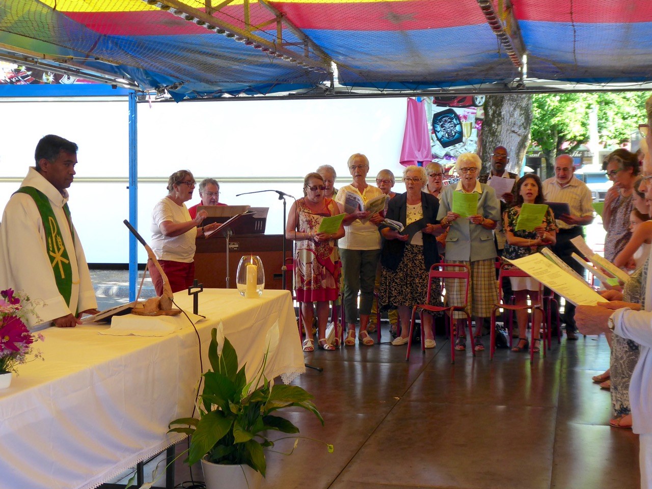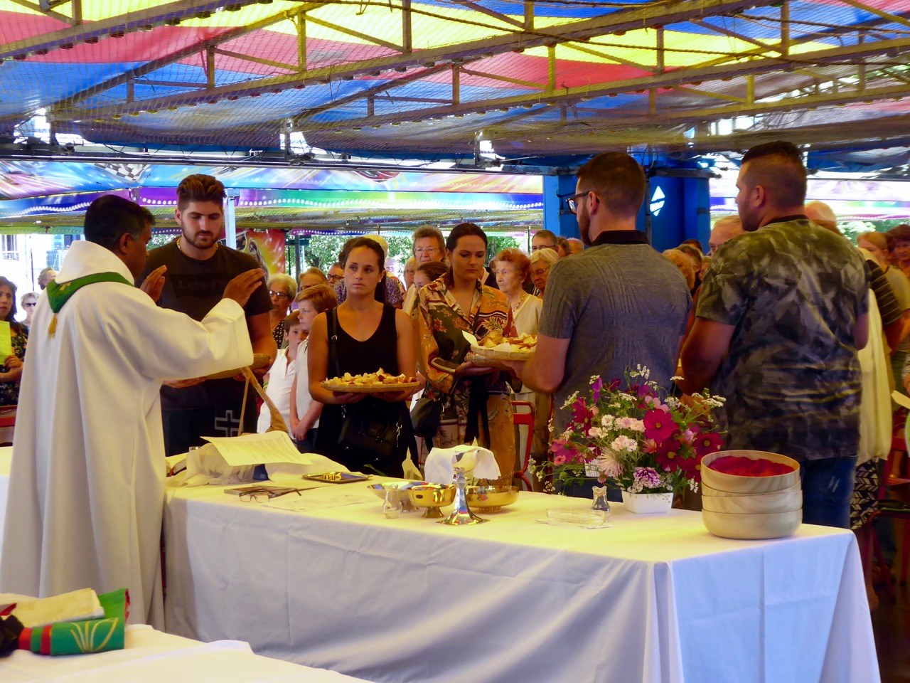 Quelques photos de cette traditionnelle messe des forains qui a été célébrée ce dimanche 29 juillet au cœur des manèges