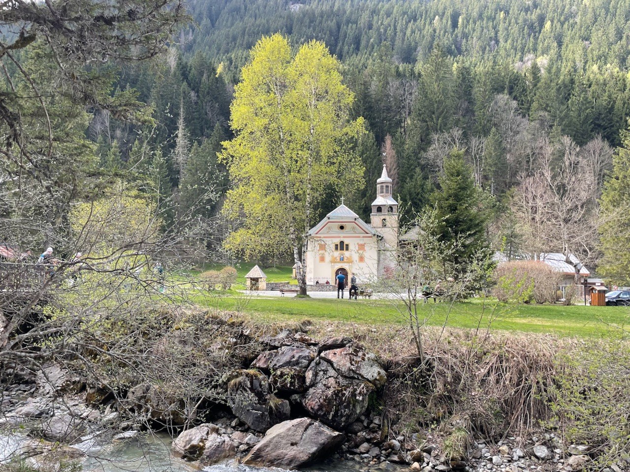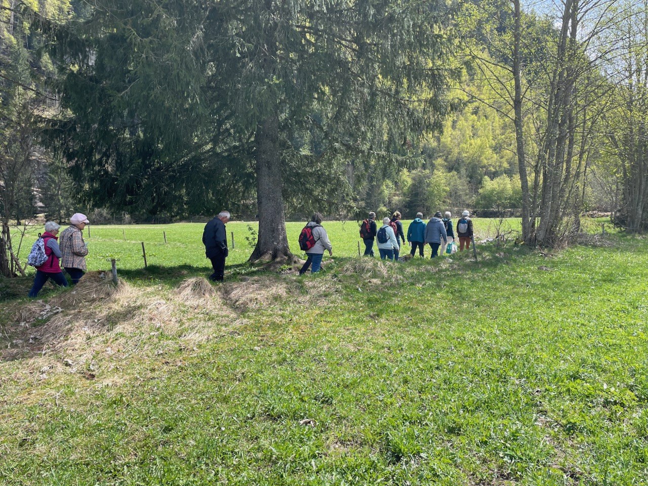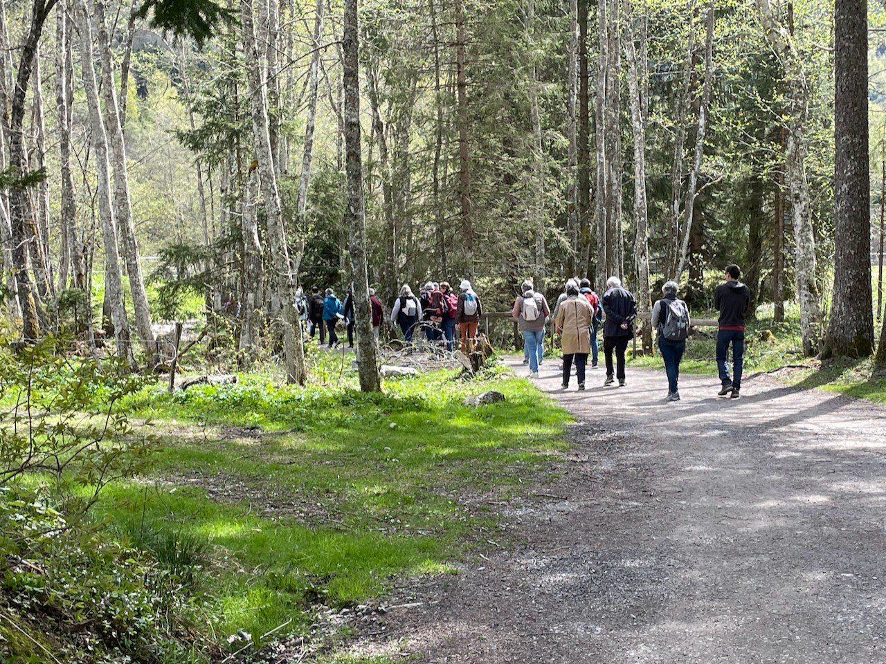 Le cheminement le long du petit ruisseau, sur ce beau chemin bordé d’arbres, accompagné du chant des oiseaux, du réveil de la nature était propice à la méditation.
