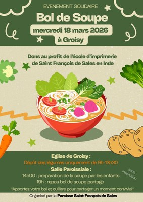Soupe partagée à partir de 19h à la salle paroissiale de Groisy.