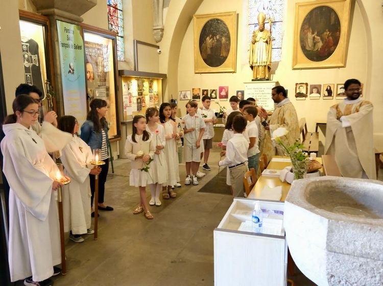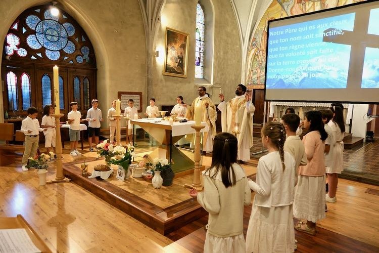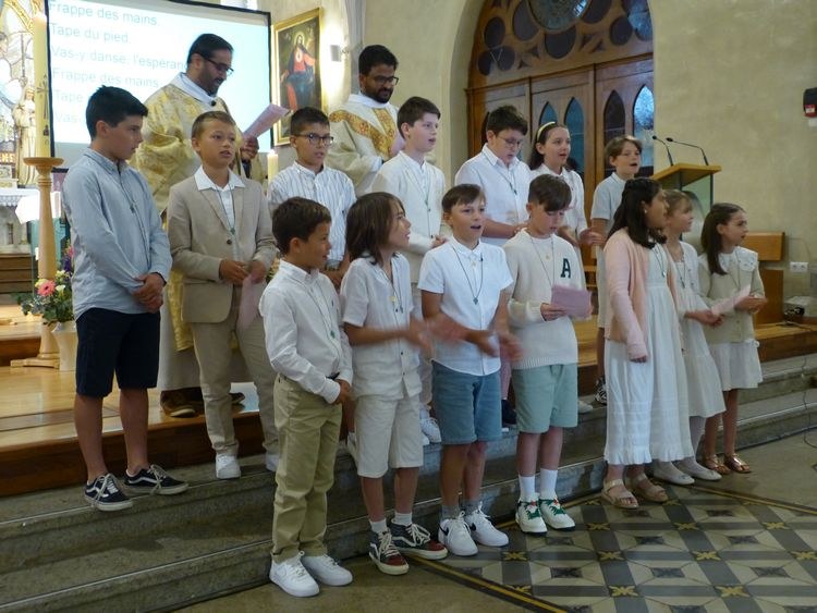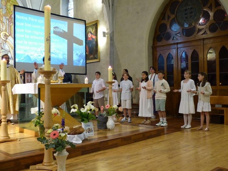 Une belle célébration en ce jour de la première communion. Le baptême de Victoire a permis aux jeunes de découvrir les symboles de ce sacrement.