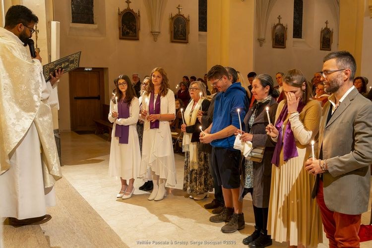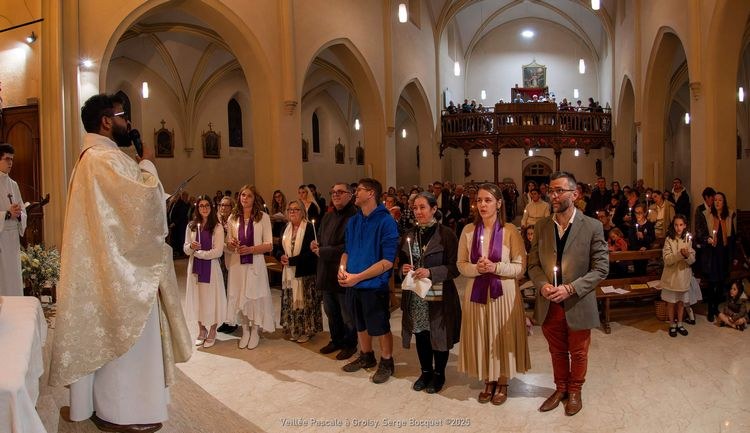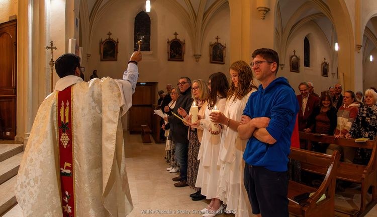 La Veillée Pascale s'est déroulée à l'église de Groisy. Nous avons eu la joie d'accueillir, par le baptême, une adulte et deux adolescentes. Bienvenue à elles.