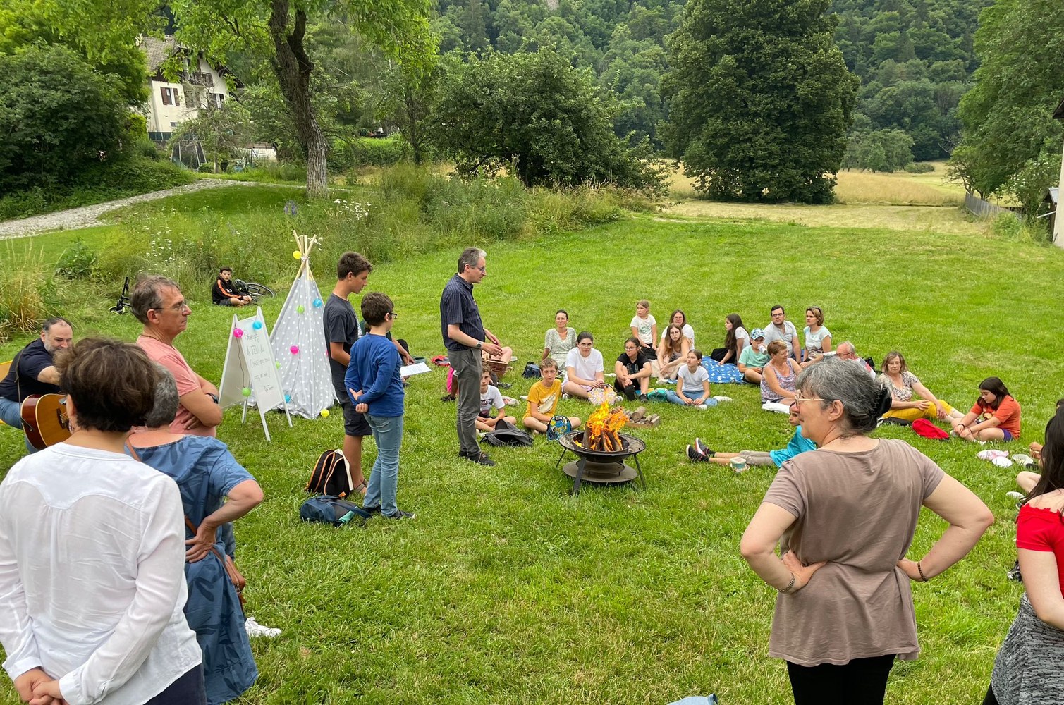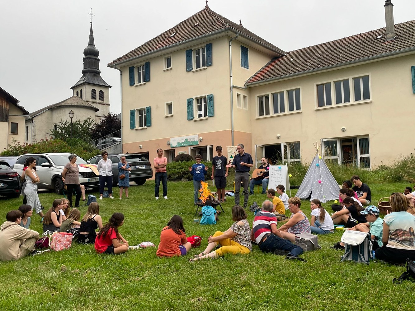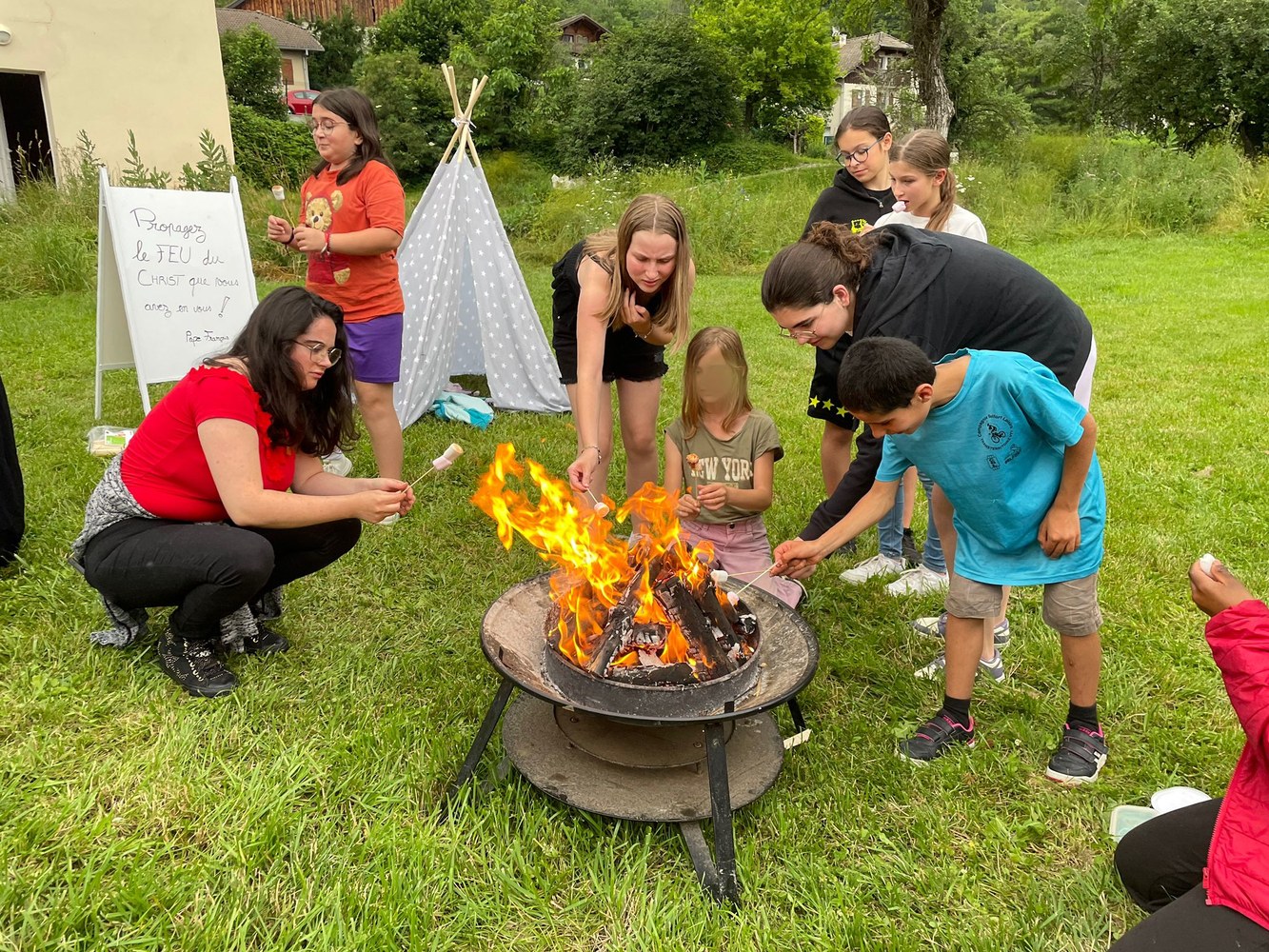 Pour la dernière rencontre de l'année scolaire 2023-2024, les jeunes de l'aumônerie ont accueilli les CM2 en première partie de rencontre puis ont fini la soirée avec les parents et paroissiens autour d'un feu de la St Jean et... des chamallows grillés !