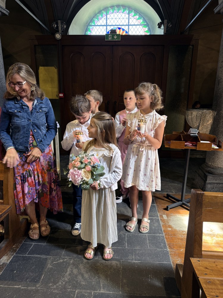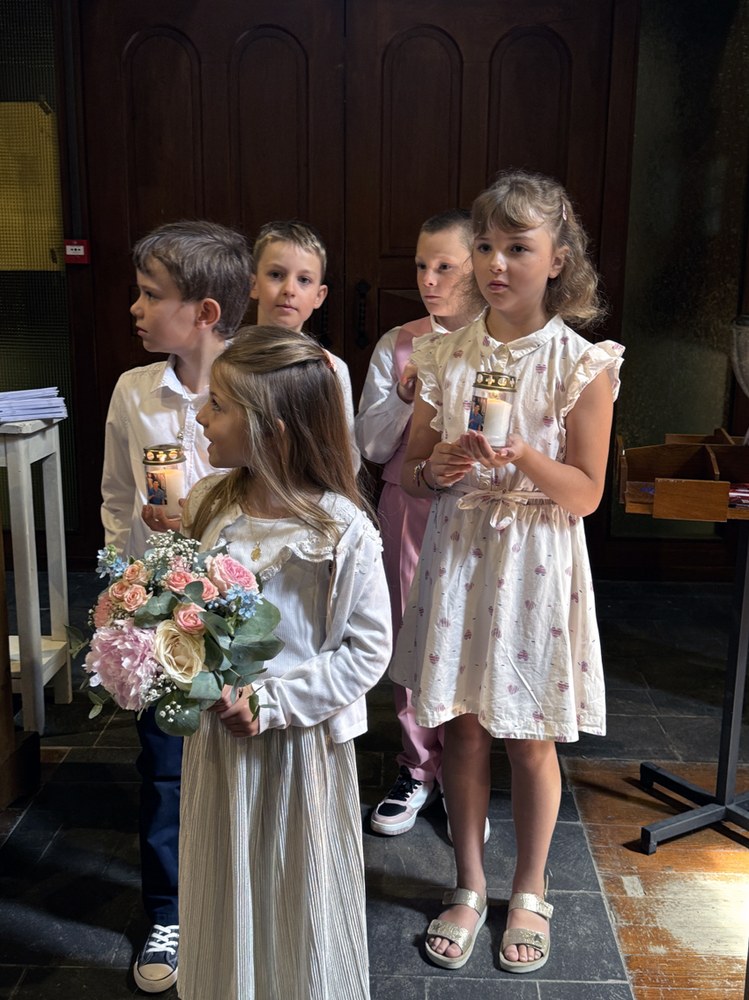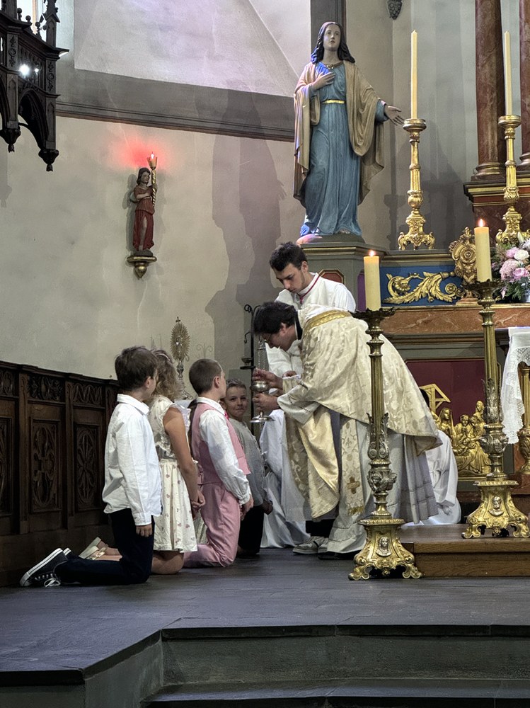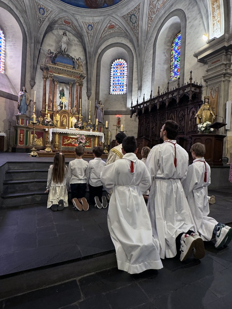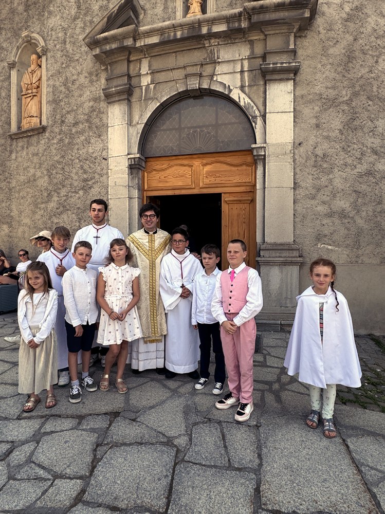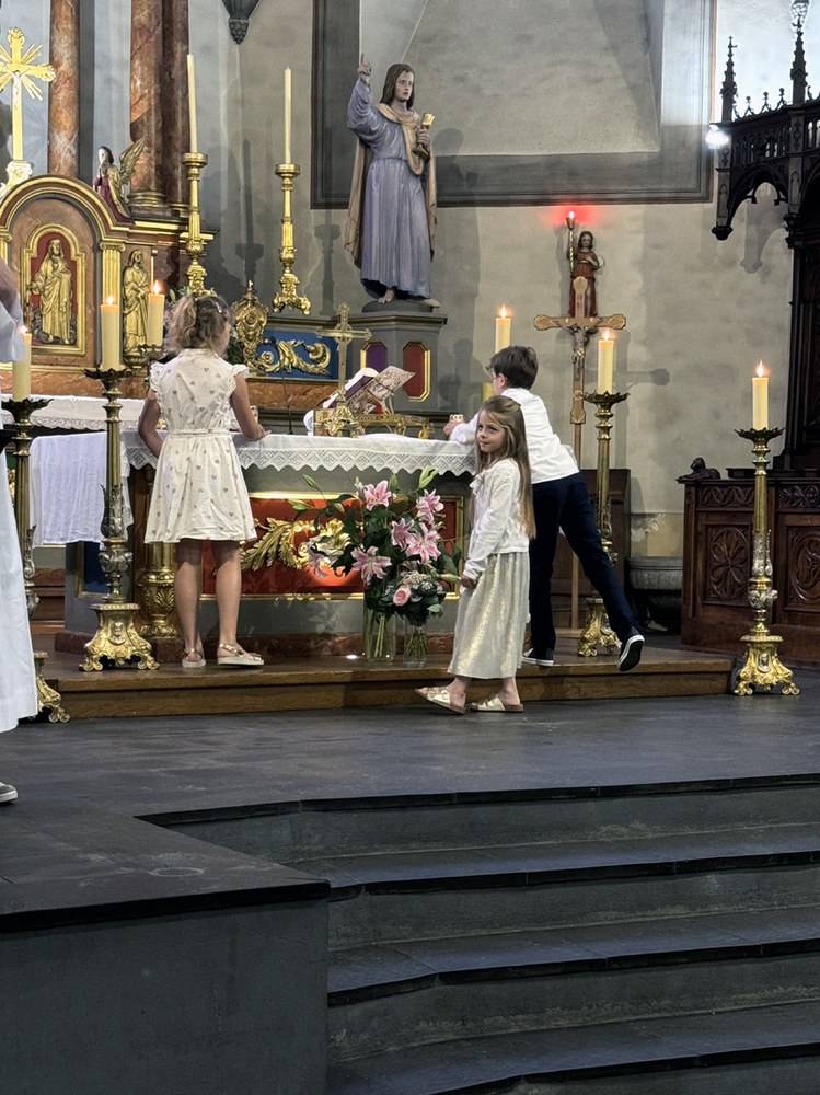 Grande joie de la première communion de quelques enfants
