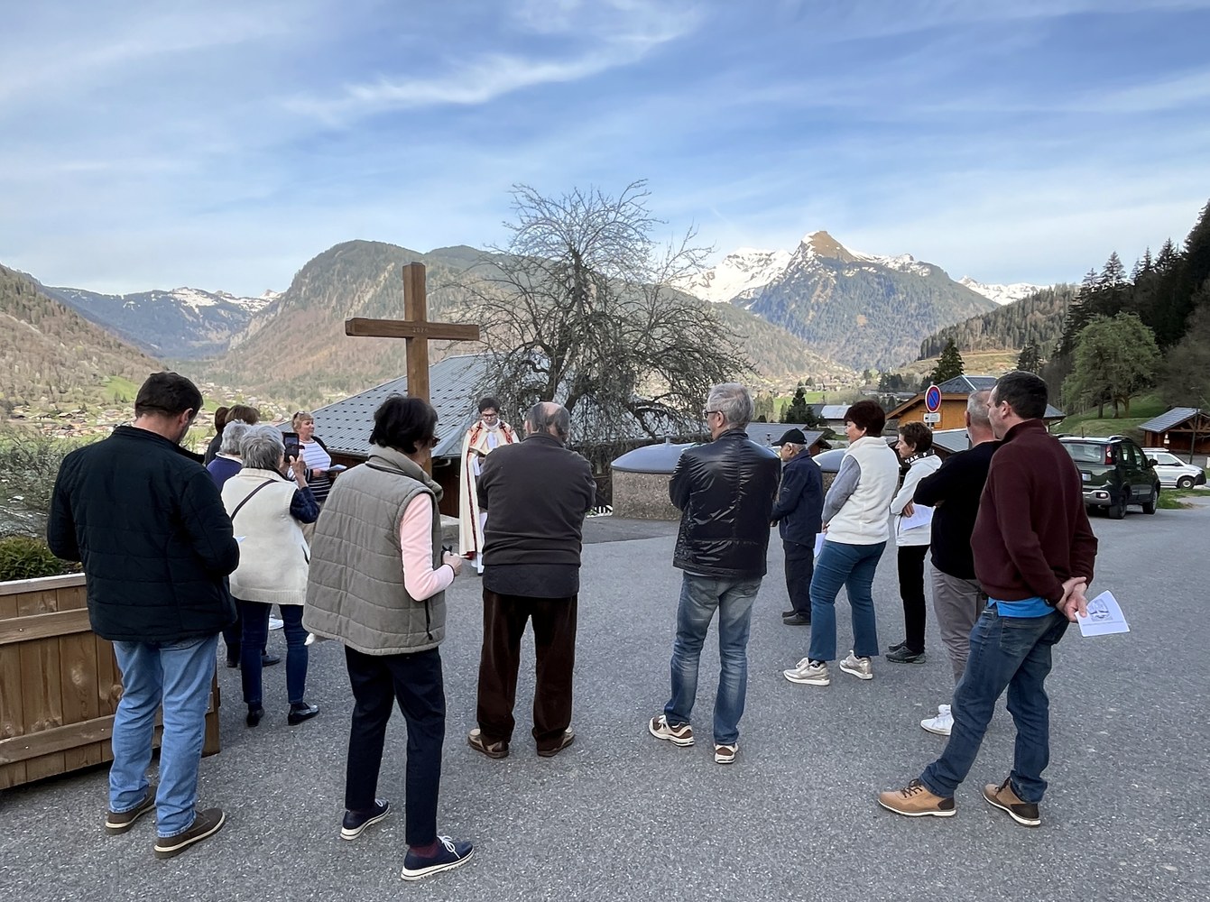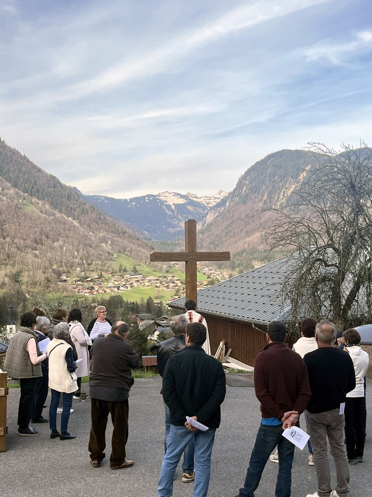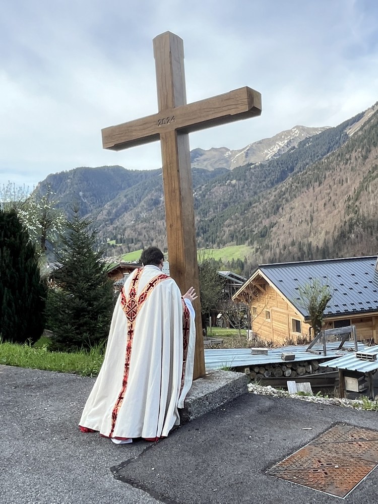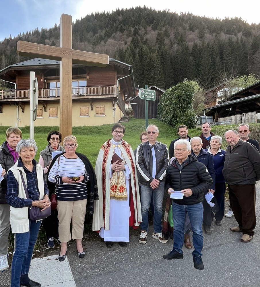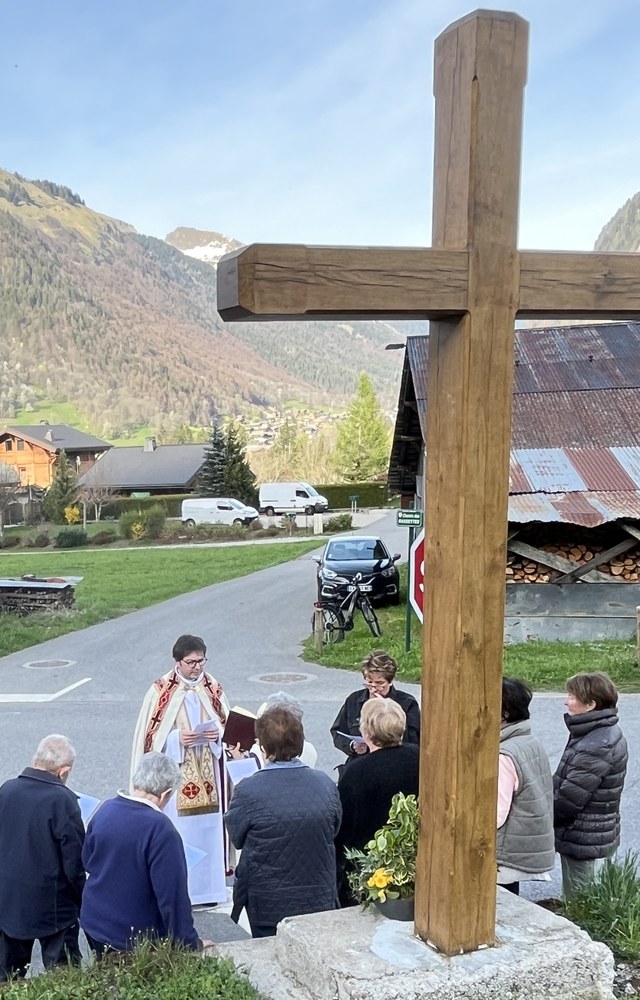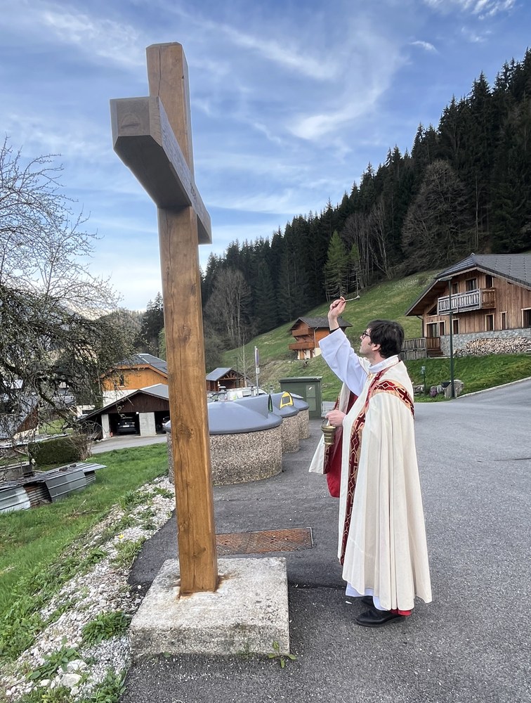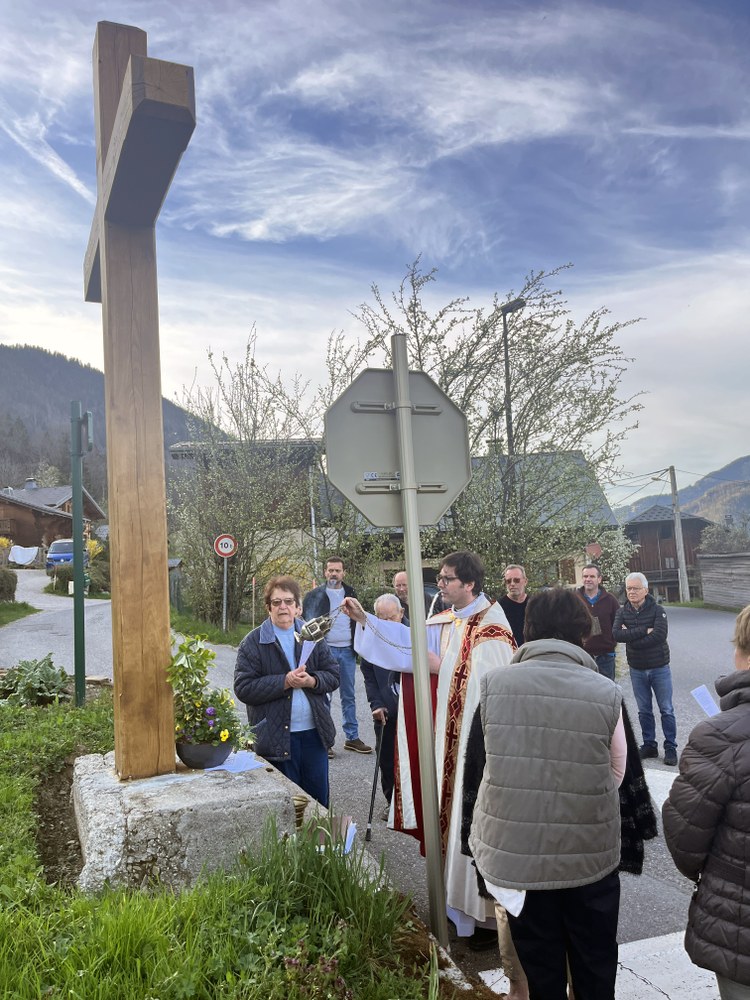 Bénédiction le vendredi 12 avril 2024 des nouvelles Croix de Laydevant et du Crêt restaurées par la Mairie d'Essert-Romand.
