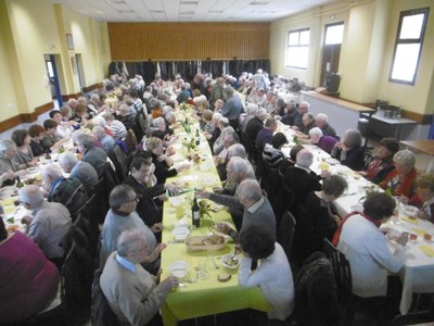 Le repas organisé par les communautés locales de Lovagny et Nonglard le 28 février 2016 a de nouveau été un succès, avec près de 190 repas pris en salle et environ 40 repas « emportés ». Des petits bouquets de fleurs de jardin précoces égayaient les tables aux couleurs de printemps. Le repas, copieux et apprécié, s’est terminé par le tirage de la tombola au cours de laquelle de nombreux lots ont été gagnés. Ceux qui ont été moins chanceux sont tout de même repartis avec le souvenir d’un bon moment passé avec des convives de différentes communes avoisinantes.