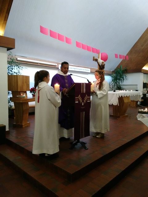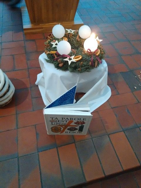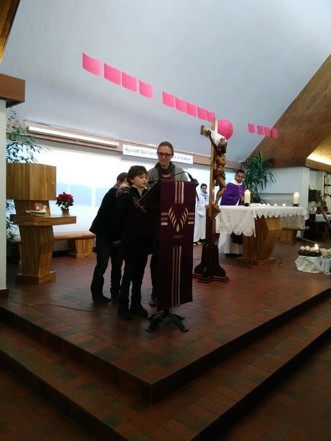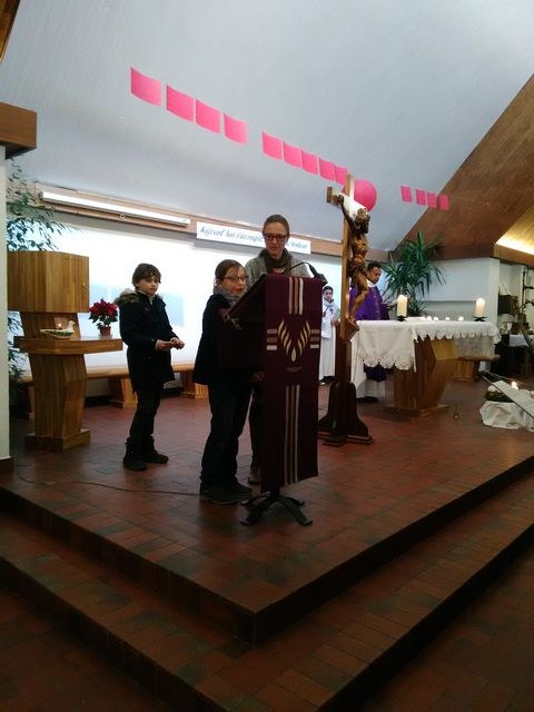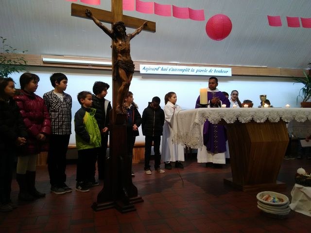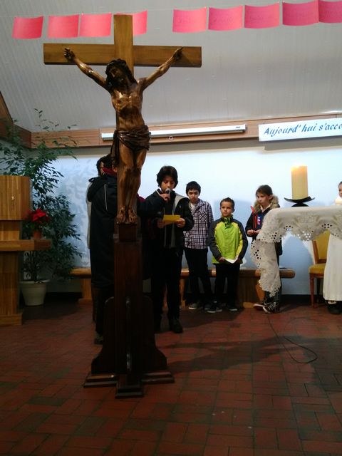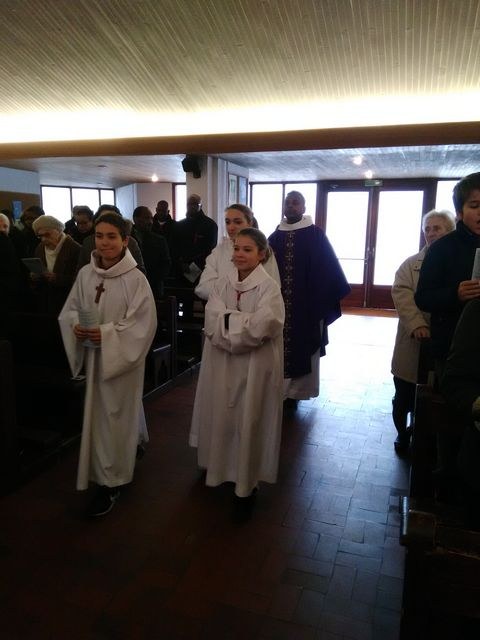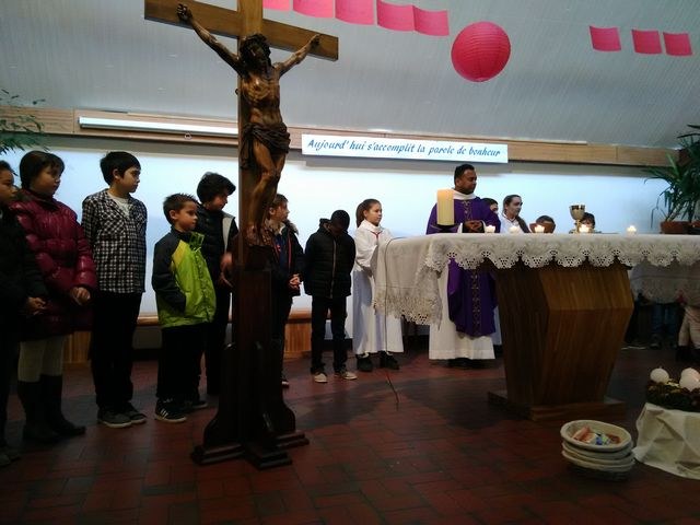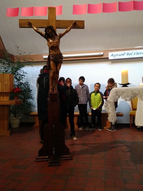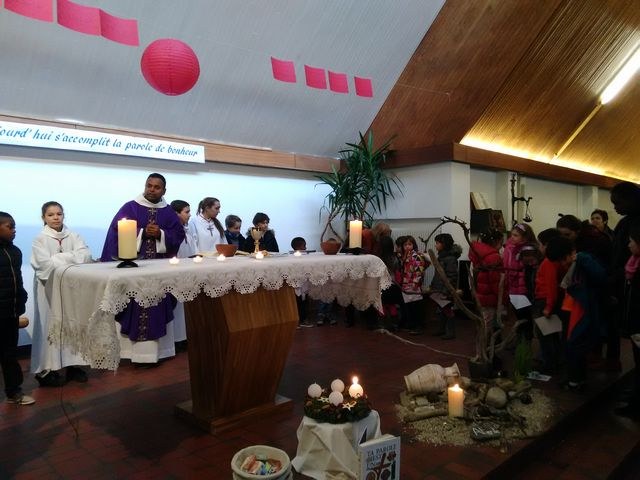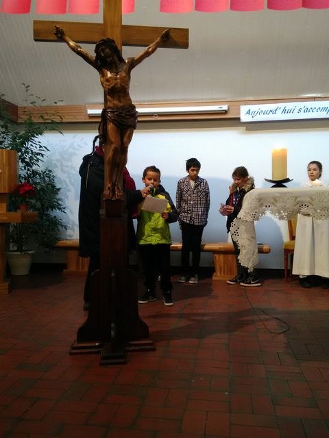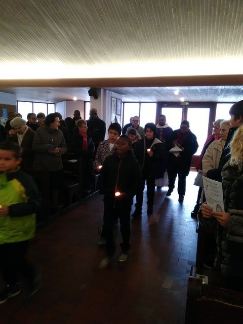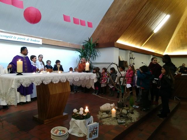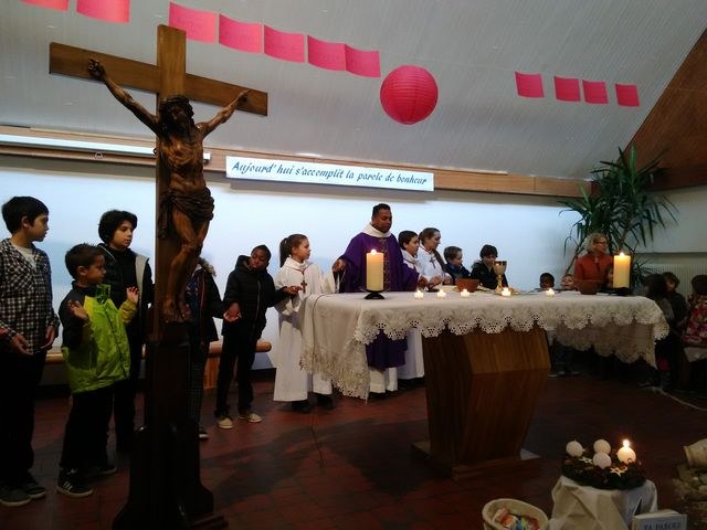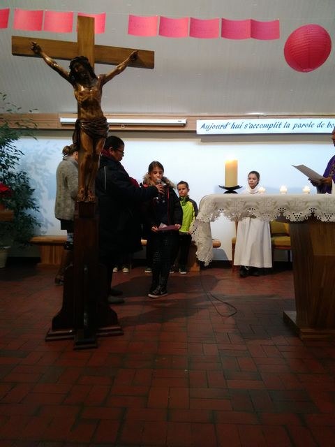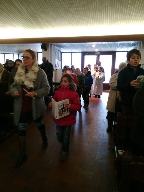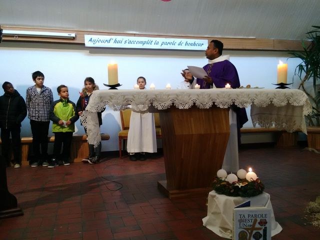 Premier dimanche de l'Avent à Ambilly, avec la première étape en entrée à l'église des enfants en âge scolaire demandant le baptême