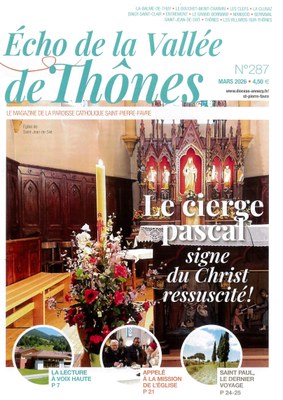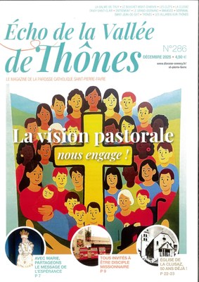 Le journal " Echo de la Vallée de Thônes " est composé d’un dossier thématique diocésain et d’articles rédigés localement par une équipe de rédaction sous la reponsabilité d'Anne-Marie Duperthuy (membres tous bénévoles et encadrés par des professionnels).