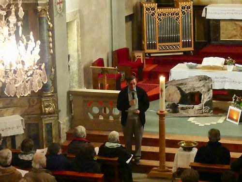 Le 31 mars 2023, à l'église des Contamines-Montjoie, une soixantaine de personnes étaient réunies autour du Père Joseph. Il souhaitait une soirée de louange avec tous ses amis, baptisés comme lui.