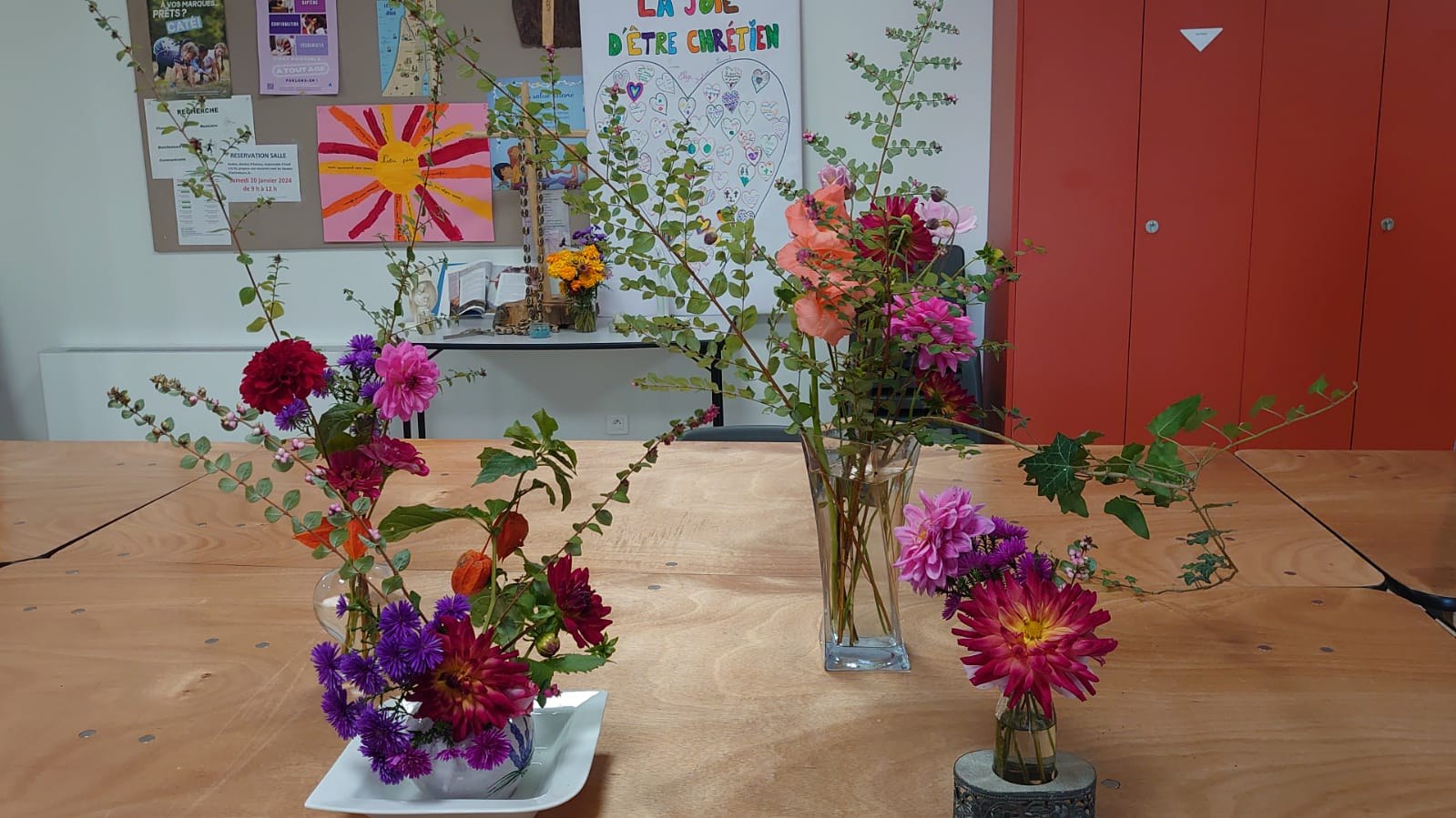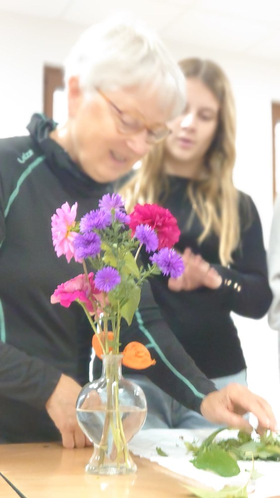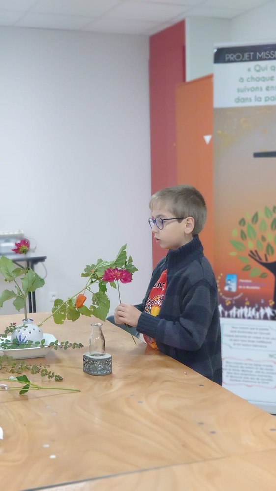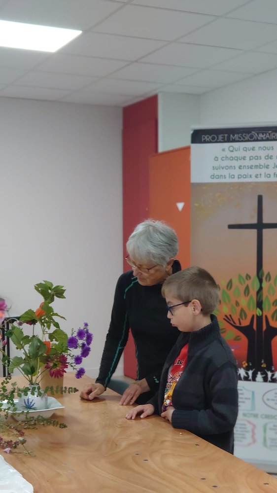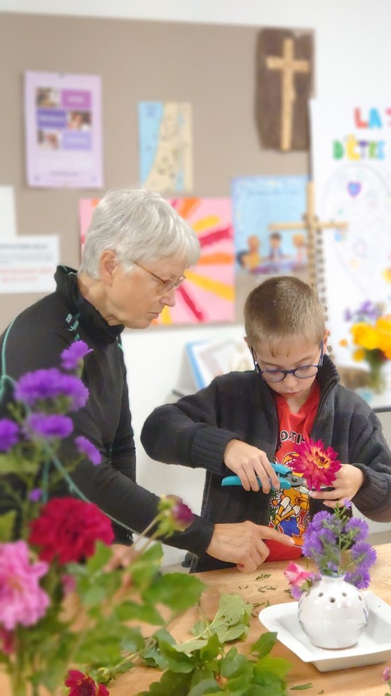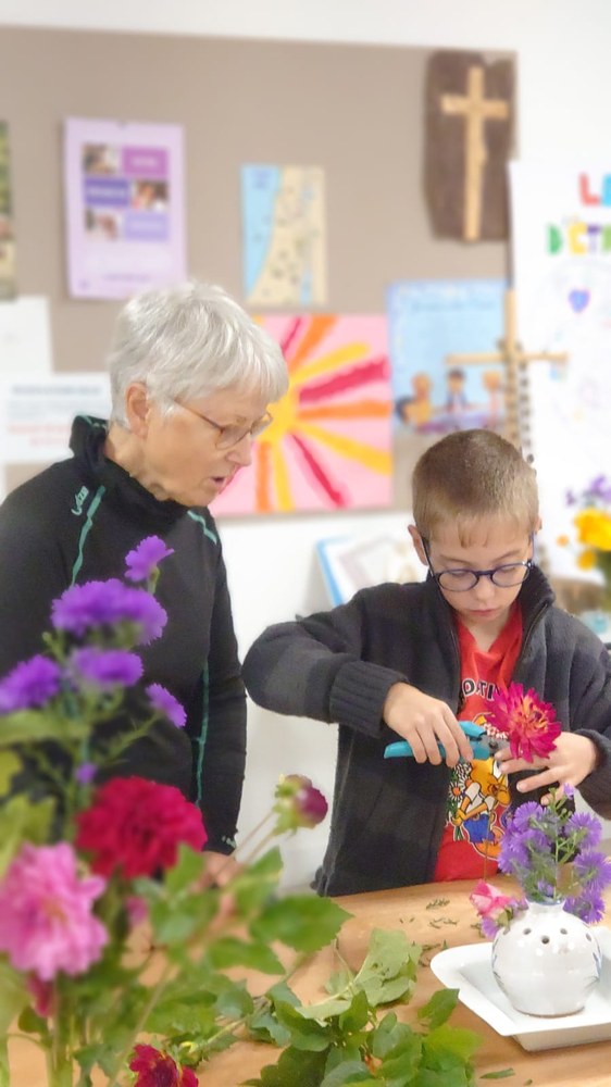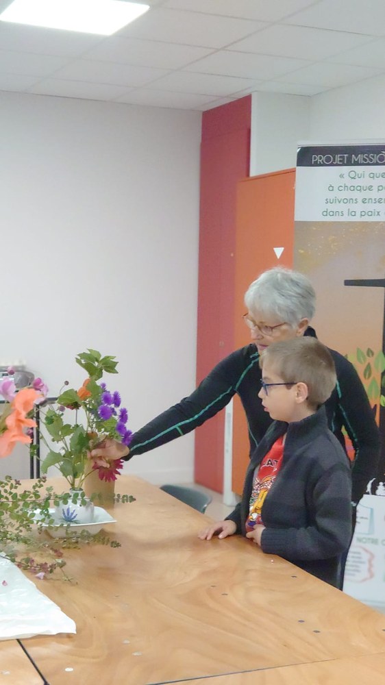 Parce que fleurir en liturgie est l'un des signes visibles de la création, comme une offrande à notre Créateur, cela permet de contribuer à la beauté de la célébration. Et c'est ainsi, que patiemment et avec une grande pédagogie, nos jeunes de l'aumônerie ont pu bénéficier des conseils d'Elisabeth pour créer et composer leurs bouquets. Une transmission pour une rencontre remplie d'esprit créatif, de paix et de joie.