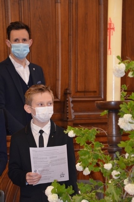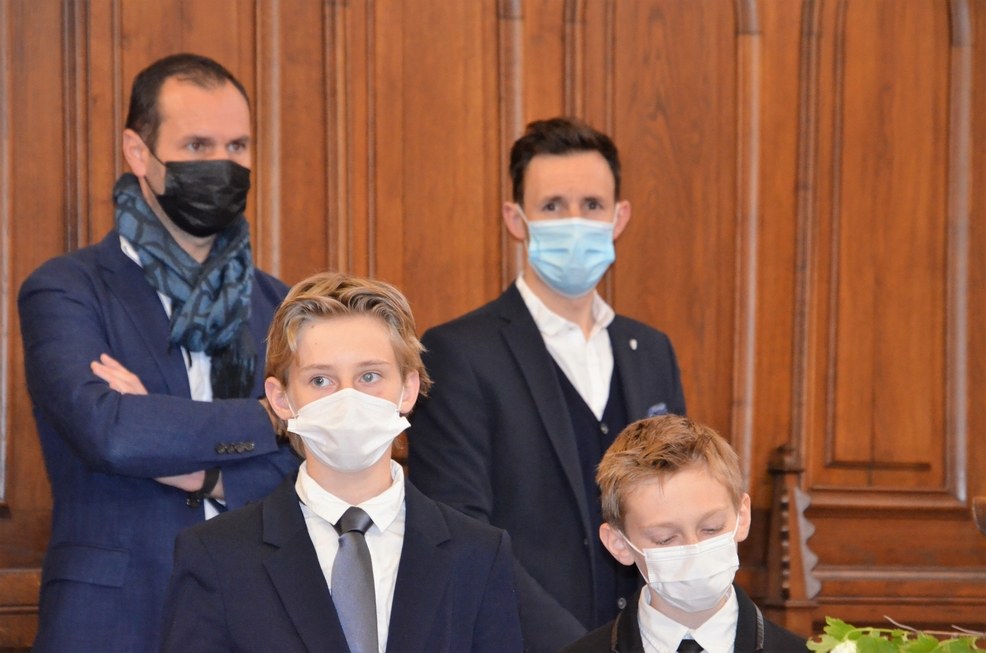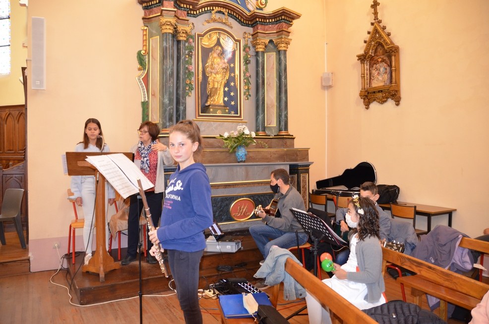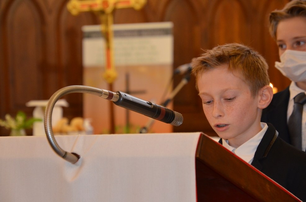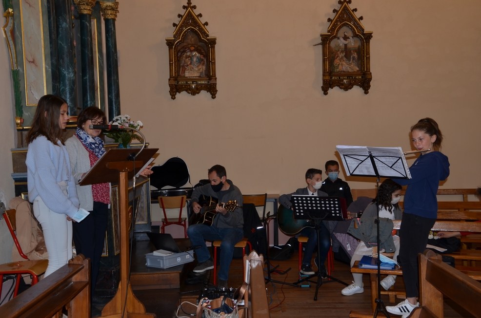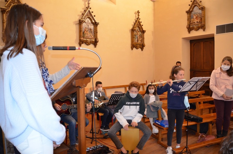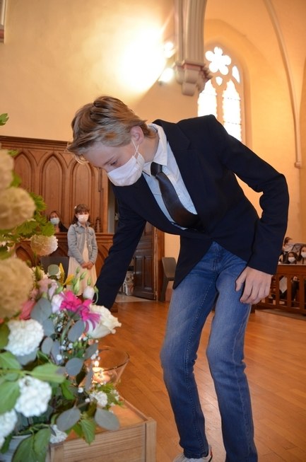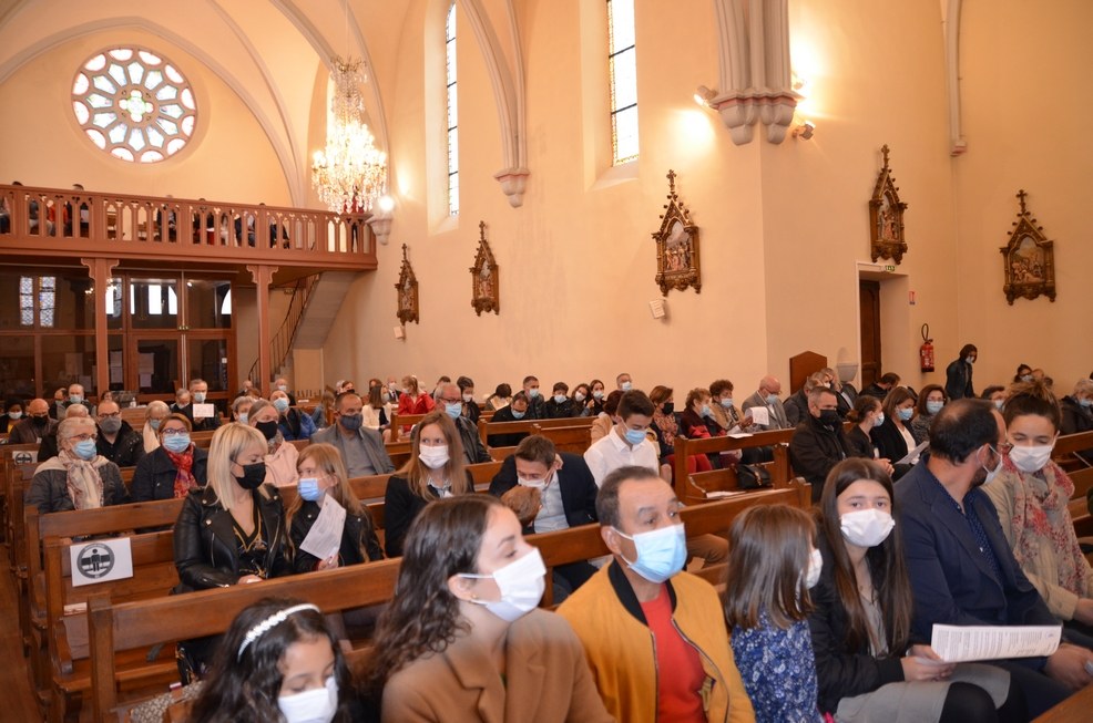 Après une année d'attente, notre 3ème groupe composé d’Élise, Elena, Clara, Matteo et nos petits lyonnais Arthur et Clément ont enfin pu communier pour la première fois en l'église de La Balme de Sillingy sous une assemblée masquée mais heureuse. La cérémonie a été officiée par le Père Jean-Claude Sancey. En cette fête de l'Ascension et de Notre-Dame de Fátima, nous avons aussi eu la joie d'entendre pour la première fois, le groupe musique junior en union avec nos communiants.