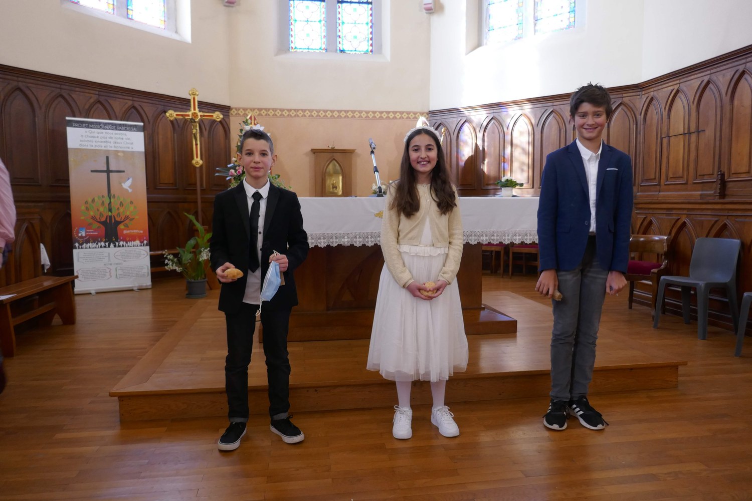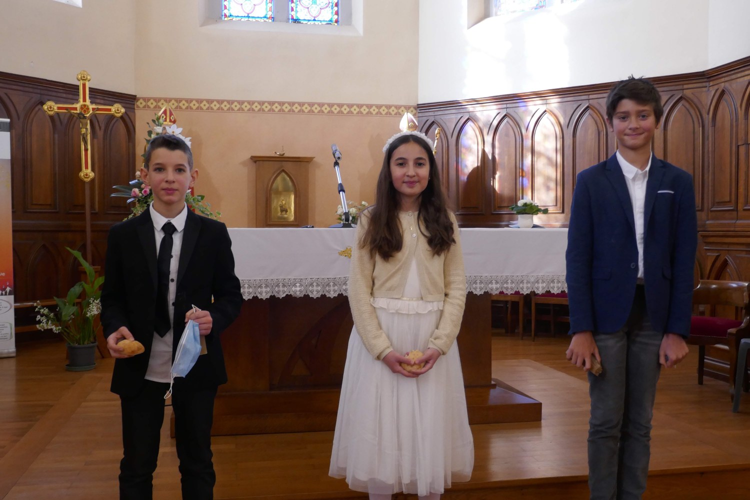 Lucie, Arthur et Lucas ont reçu pour la première fois la communion ce dimanche en l'église de La Balme.