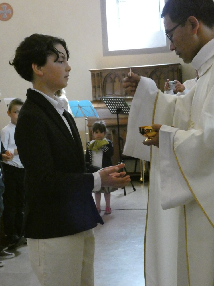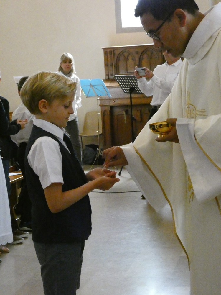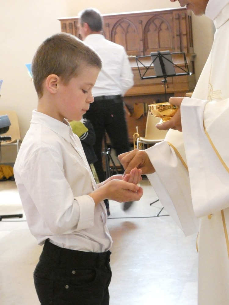 avec lequel l'enfant reçoit la communion dans ses mains,