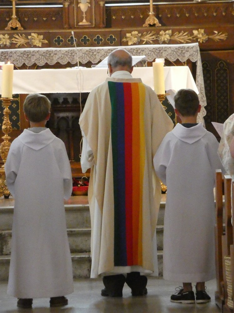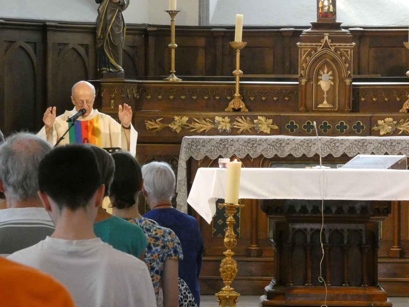 Père Alain avait revêtu la chasuble arc-en-ciel des JMJ, et son homélie a été suivie attentivement, appréciée.