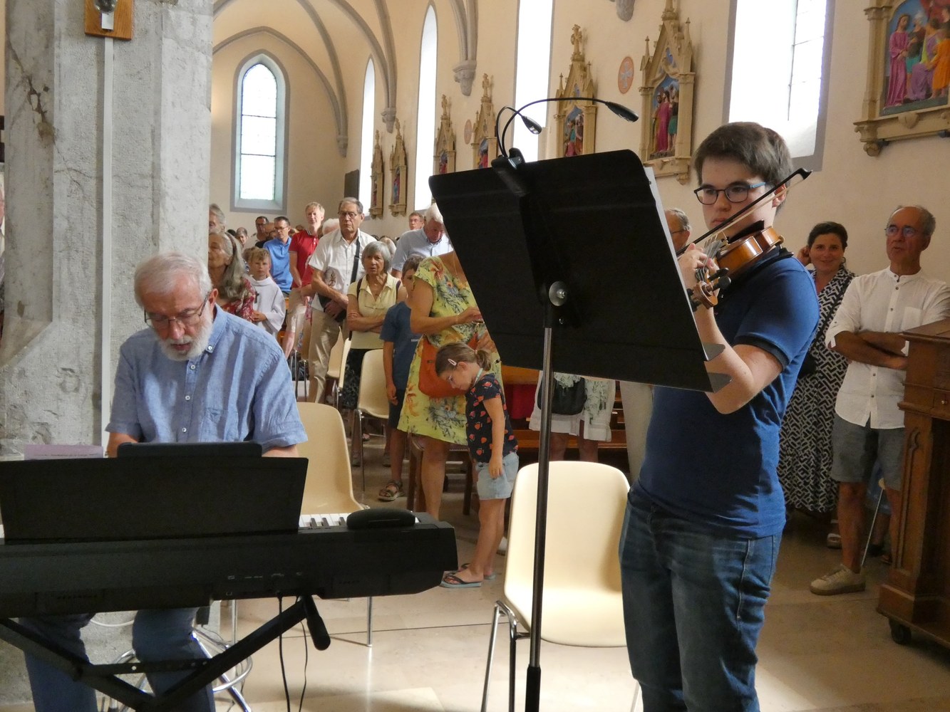 C'était fête, et l'église de Saint-Jorioz était comble, quelques personnes ont bien voulu rejoindre le choeur pour pouvoir s'asseoir.
